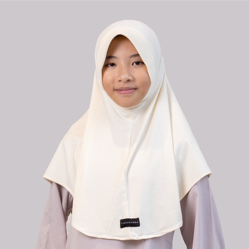Bergo dengan pet untuk anak, dirancang agar nyaman dipakai sepanjang hari. Cocok untuk sekolah maupun aktivitas sehari-hari, bergo ini praktis, ringan, dan mudah digunakan tanpa ribet